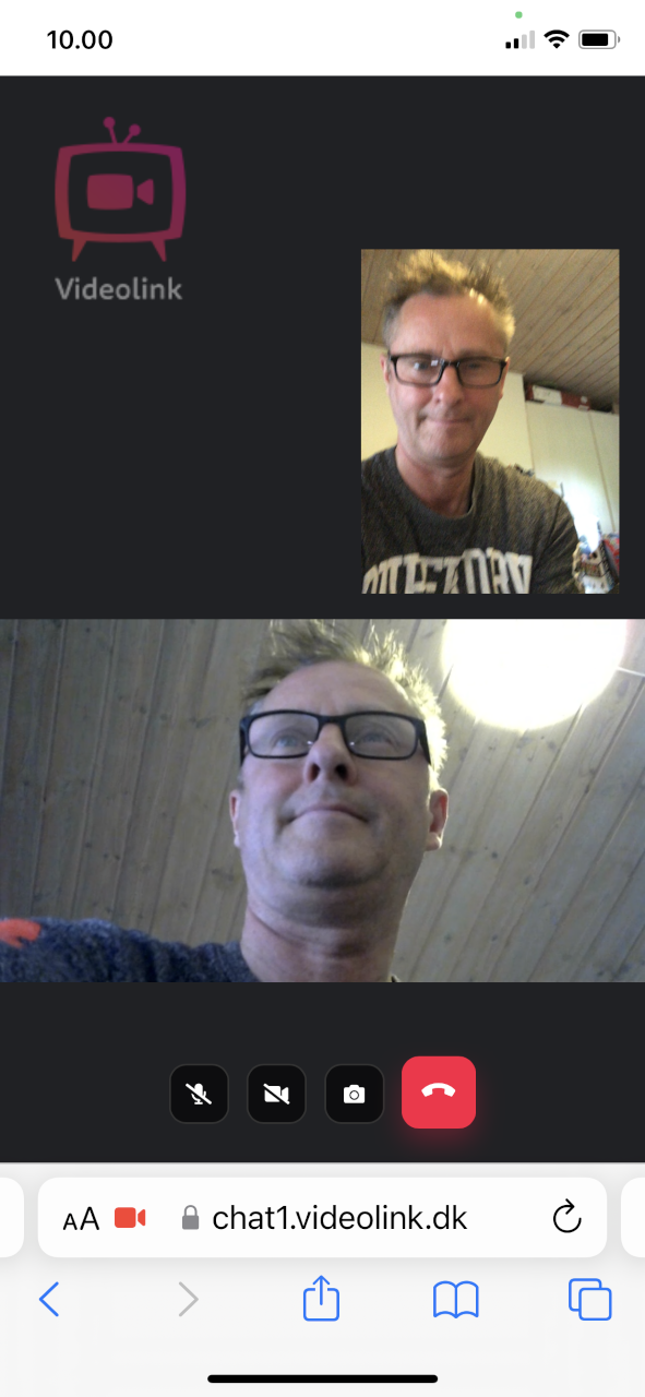 - Når du vil afbryde et videoopkald, skal du nu klikke på den røde knap (med et hvidt telefonrør – se foto ovenfor) nederst på skærmen (NYT).