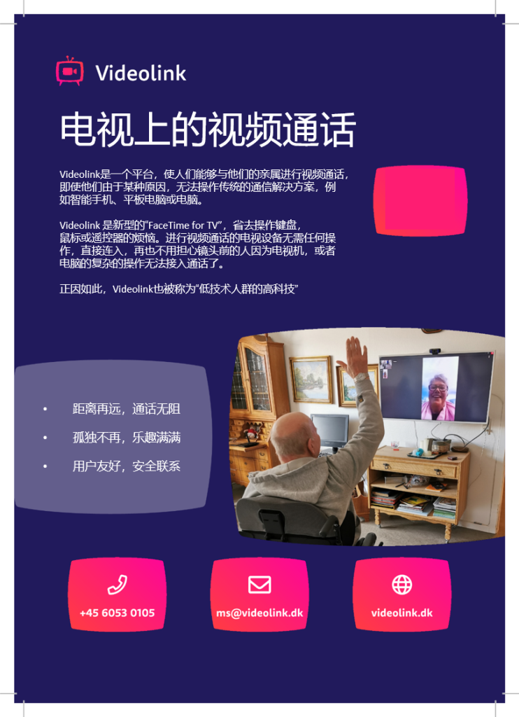 This week we have been working on preparing for our booth at the CIIE Expo in Shanghai, China. Due to COVID-19 restrictions we are not allowed to participate physically at the Expo, so we have recorded a video-presentation of Videolink for the Sustainable Health Forum which will take place at the Expo on November 7th. Beside this, an employee from the INNOVATION CENTRE DENMARK | SHANGHAI, ROYAL DANISH CONSULATE GENERAL, has translated our flyers and expo material into Chinese, so we are very grateful for the help we have received. We are very exiting to experience how our booth setup will look like and how it will be to participate remote with a booth on a Expo many thousands of kilometers away. We have never been doing this before so it will be a huge challenge for us but it will also be exactly in the spirit of Videolink to be communicating online on a distance. Tomorrow Saturday 5th 08.00 o’clock we will test the Videolink connection from the Expo in Shanghai to my place in Denmark. We are so excited and we are looking forward to meet the Chinese Expo visitors through Videolink so that we can explain how www.videolink.dk can help the elderly, vulnerable and diable citizens in China.